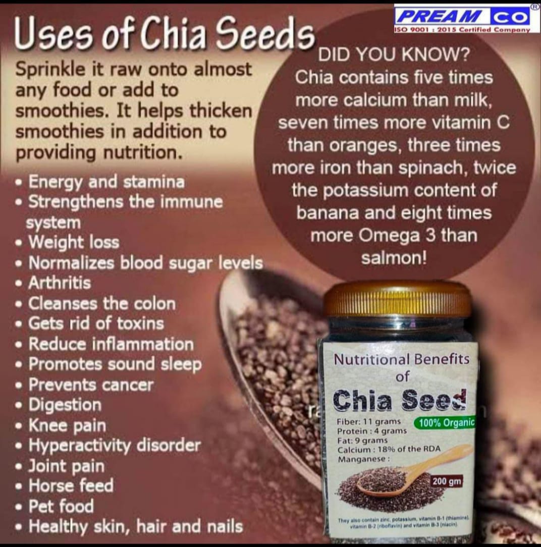 Sanjeevani Chia Seeds by Preamco Sanjeevani Ayurved are a powerhouse of natural nutrition, packed with Omega-3 fatty acids, fiber, protein, calcium, and antioxidants that support complete body wellness. These tiny super seeds help improve digestion, support heart health, regulate blood sugar, and aid in weight management naturally. Chia Seeds are also excellent for glowing skin, strong bones, and sustained energy throughout the day. Ideal for fitness lovers and health-conscious individuals, you can add them to water, smoothies, salads, or breakfast bowls for a quick nutrition boost. 100% natural, chemical-free, and gluten-free, Sanjeevani Chia Seeds are suitable for all age groups. Start your day with the perfect balance of taste and health — Sanjeevani Chia Seeds, the Ayurvedic way to stay fit, active, and healthy every day! 🌿